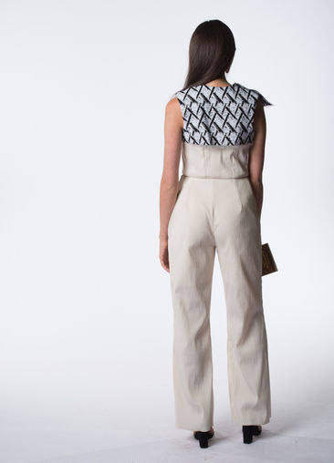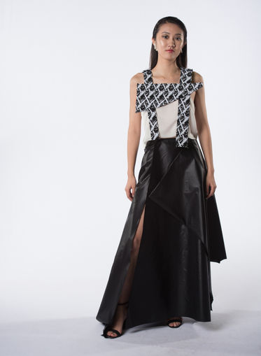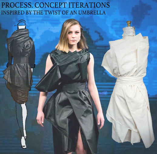 Spectrum of Paradox explores the lifetime transition of Sir Arthur Conan Doyle, author of the Sherlock Holmes series, through an eight look women's collection. As a trained medical professional with an eye for reason, later in life Sir Arthur Conan Doyle became the leader of the Spiritualist movement. The juxtaposition of logic and belief establish the bookends of the collection with angular silhouettes moving into ethereal moments that evaporate into mysterious disappearance. All garments, accessories, and jewelry were constructed by Jacqueline Fogarty.